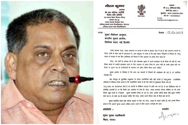 नीरज कुमार ने पत्र में लिखा कि राजद अध्यक्ष लालू प्रसाद भ्रष्टाचार के मामले में रांची के होटवार जेल में बंद है और स्वास्थ्य कारणों से रिम्स, रांची के पेइंग वार्ड में इलाजरत हैं। जेल मैनुअल में स्पष्ट है कि लालू यादव से सप्ताह में एक दिन (शनिवार) को मिलने के लिए अदालत से आदेश लेना पड़ता है। इसके बाद भी लोकसभा चुनाव में लालू के हस्ताक्षर वाले टिकट पार्टी के उम्मीदवारों को बांटे गए हैं।