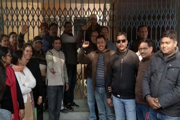 वेतन न मिलने पर भड़के शिक्षकों ने सीईओ कार्यालय पर की तालाबंदी