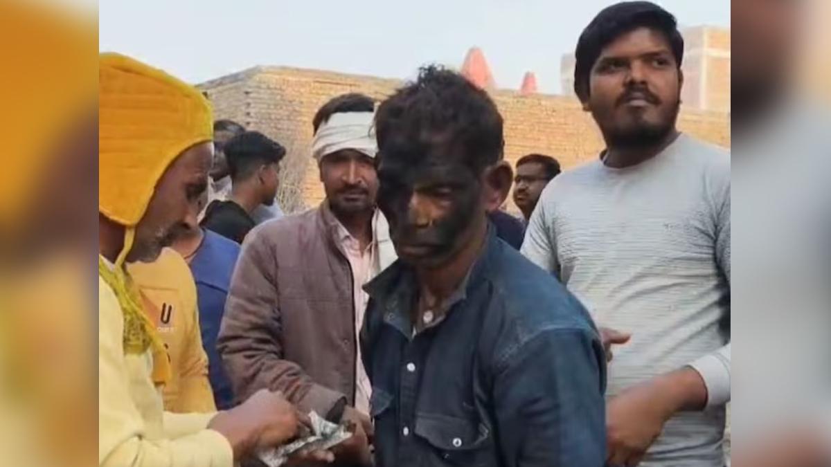 चेहरे पर कालिख, गले में चप्पलों की माला