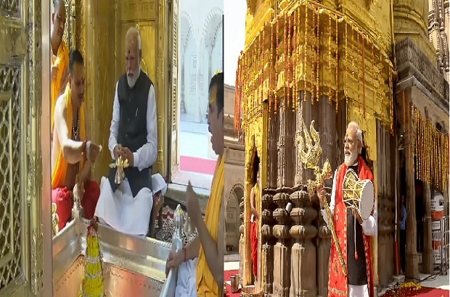 वाराणसी : प्रधानमंत्री मोदी ने वाराणसी में 14 किमी लंबा रोड शो किया, काशी विश्वनाथ मंदिर में की पूजा-अर्चना वाराणसी : प्रधानमंत्री नरेन्द्र मोदी ने अपने दो दिवसीय दौरे के दूसरे दिन बुधवार सुबह वाराणसी में रोड शो किया, जिसे देखने के लिए सड़क पर भारी भीड़ उमड़ी। पार्टी नेताओं ने यह जानकारी दी। रोड शो बनारस लोकोमोटिव वर्क्स (बीएलडब्लू) से शुरू हुआ और लहरतारा, कचहरी, आंबेडकर चौराहा, चौकाघाट, तेलियाबाग, लहुराबीर और मैदागिन से होते हुए काशी विश्वनाथ धाम पर समाप्त हुआ। मंदिर में प्रधानमंत्री ने वैदिक मंत्रोच्चार के बीच पूजा-अर्चना और अनुष्ठान किए।