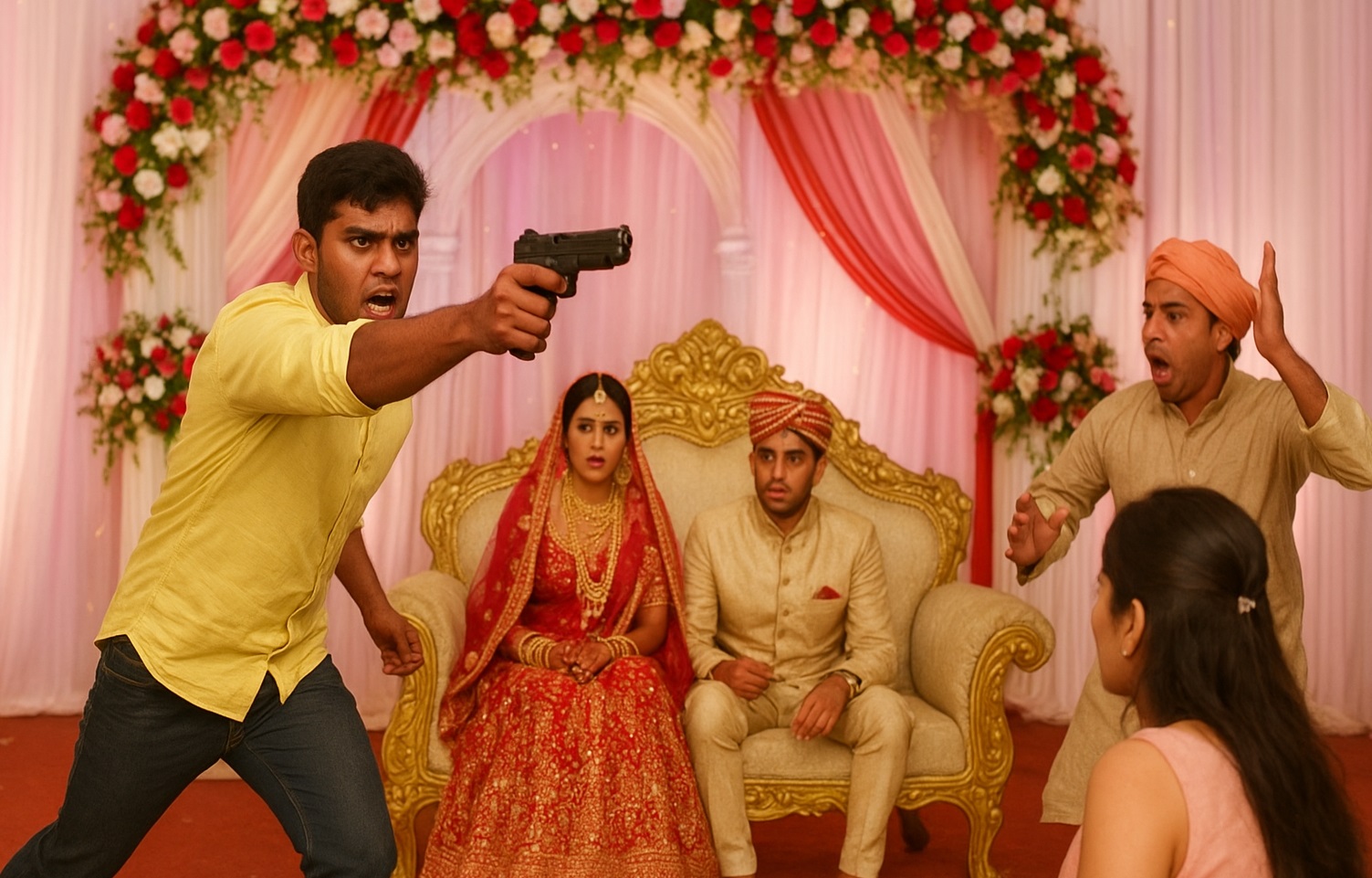जैसे ही परवेश हॉल में दाखिल हुआ, उसने तमंचा निकालकर दुल्हन की ओर फायर कर दिया। गनीमत रही कि दुल्हन बाल-बाल बच गई। गोली चलने की आवाज से पूरे हॉल में अफरा-तफरी मच गई। लोग चीखते हुए इधर-उधर भागने लगे और कुछ सेकंड में माहौल दहशत में बदल गया।