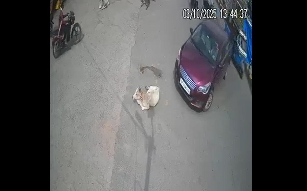 यह घटना शनिवार को मऊरानीपुर तहसील के बाजार इलाके की है। वीडियो में एक महरून रंग की कार, जिस पर लर्नर का स्टीकर लगा था, बाजार में तेजी से घुसती दिखाई देती है। कार को एक युवक चला रहा था, जिसने मुड़ते वक्त सड़क पर बैठे सफेद रंग के बछड़े को नहीं देखा। कार सीधे बछड़े पर चढ़ गई और करीब 3 से 4 मीटर तक उसे घसीटते हुए ले गई।