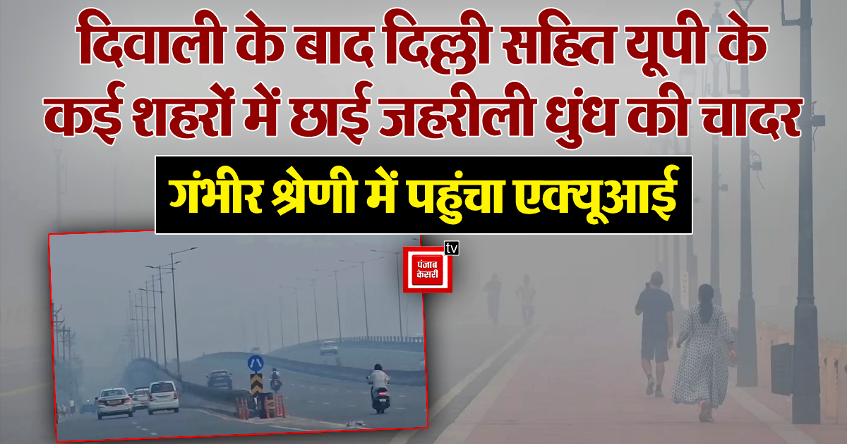 दिवाली के जश्न के बाद दिल्ली-एनसीआर सहित गाजियाबाद में छाई जहरीली धुंध की चादर, दमघोंटू हवा ने लोगों को किया परेशान