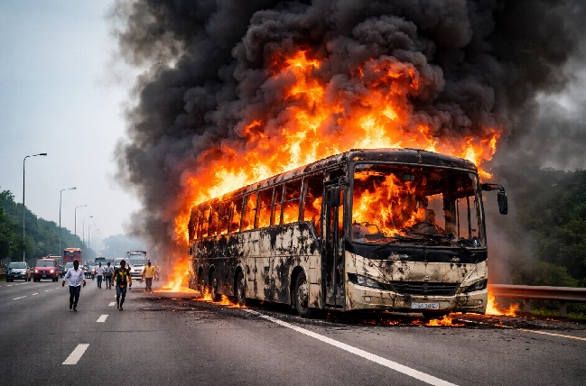 यमुना एक्सप्रेसवे पर डबल-डेकर बस में लगी भीषण आग, 60 यात्रियों की हलक में आई जान! धूं-धूं कर जली चलती गाड़ी