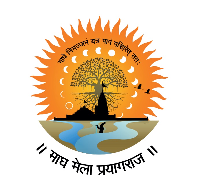 लोगो के केंद्र में सूर्य और चंद्रमा की 14 कलाओं का चित्रण किया गया है, जो भारतीय ज्योतिष के अनुसार सूर्य, चंद्रमा और नक्षत्रों की सटीक स्थितियों को दर्शाता है। इसी ज्योतिषीय गणना के आधार पर माघ मास की निर्धारण प्रक्रिया होती है। जब सूर्य मकर राशि में प्रवेश करता है और पूर्णिमा के दौरान चंद्रमा माघी या अश्लेषा-पूर्वा फाल्गुनी नक्षत्र के समीप होता है, तब माघ मेला पड़ता है। यही समय आध्यात्मिक ऊर्जा के उदय का विशेष काल माना जाता है।
