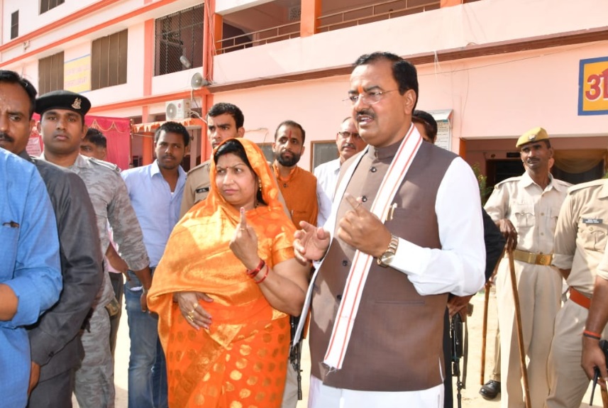 डिप्टी सीएम केशव प्रसाद मौर्य ने पत्नी संग डाला वोट, ट्विटर पर शेयर की तस्वीरें