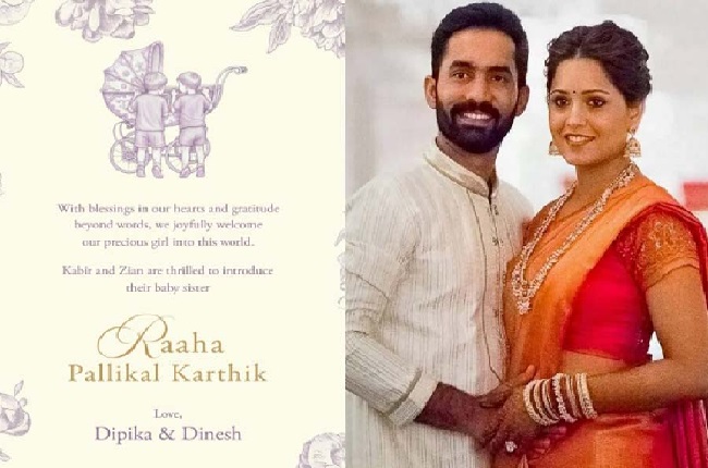 UP Desk : भारतीय क्रिकेट और खेल जगत से जुड़ी एक खुशखबरी सामने आई है। पूर्व भारतीय क्रिकेटर Dinesh Karthik और स्क्वैश स्टार Dipika Pallikal के घर बेटी का जन्म हुआ है। कपल ने सोशल मीडिया के जरिए इस खबर को साझा करते हुए अपने परिवार में नए सदस्य के आने की जानकारी दी।