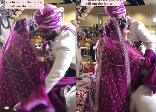 इंस्टाग्राम पर शेयर किए गए इस वीडियो में पंडित जी की एक बात ने पूरे माहौल को हंसमुख बना दिया। यह वीडियो शादी की रस्मों के बीच हुए एक अनोखे पल को दिखाता है, जो हर किसी को हंसने पर मजबूर कर देता है। ध्यान खींच रहे इस वीडियो में दिखता है कि शादी की सभी रस्में पूरी हो चुकी हैं और दूल्हा-दुल्हन मंडप में बैठे हैं। तभी पंडितजी मजाक के मूड में आ जाते हैं और पास रखी कुर्सी की ओर इशारा करते हुए कहते हैं, ‘जो इस कुर्सी पर पहले बैठेगा, वही घर चलाएगा.’ बस, इतना सुनते ही दूल्हा-दुल्हन के बीच मजेदार जंग शुरू हो जाती है। दोनों कुर्सी पर पहले बैठने के लिए आपस में हंसी-मजाक में खींचतान करने लगते हैं। कुछ ही सेकंड की इस मस्ती में आखिरकार दुल्हन बाजी मार लेती है और कुर्सी पर पहले बैठ जाती है।