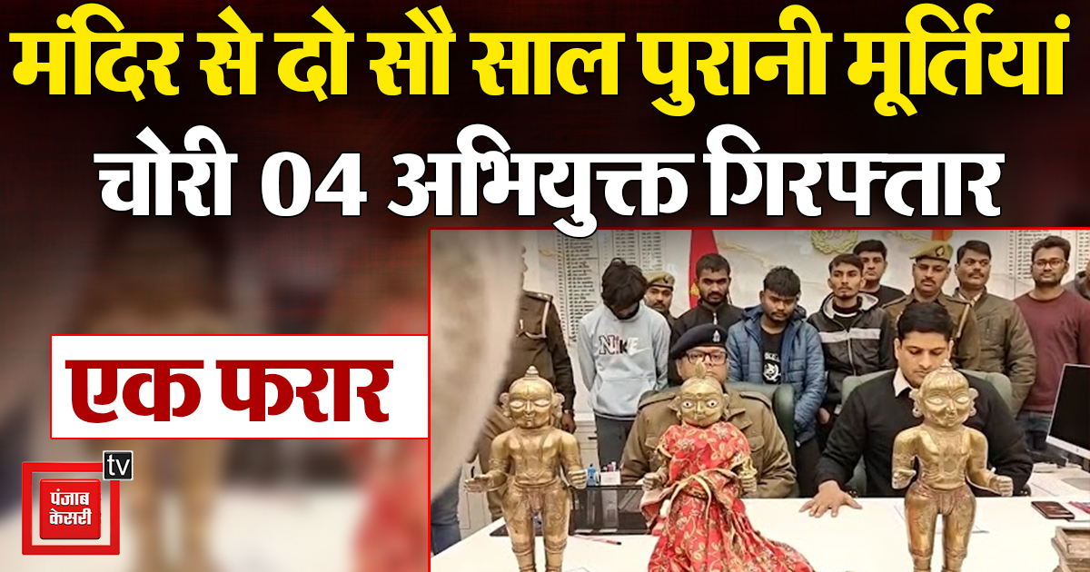 मंदिर से दो सौ साल पुरानी मूर्तियां चोरी करने वाले 04 शातिर अभियुक्त गिरफ्तार, एक फरार