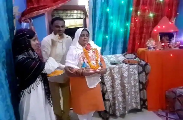 बता दें कि जिले के थाना रोरावर इलाके के शाहजमाल स्थित एडीए कॉलोनी निवासी भारतीय जनता पार्टी की महिला मोर्चा की जयगंज मंडल उपाध्यक्ष रूबी आसिफ खान ने भगवान श्री गणेश की प्रतिमा को अपने घर में स्थापित किया है। रूबी आसिफ खान ने अपने आवास पर पूरे विधि-विधान के साथ सिद्धिविनायक भगवान गणेश की प्रतिमा जयकारे एवं बैंड-बाजे के स्थापित की है।