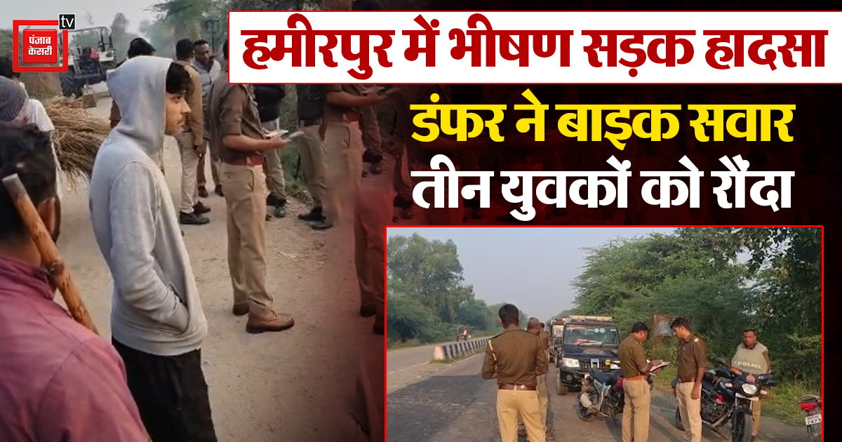 हमीरपुर में भीषण सड़क हादसा: डंफर ने बाइक सवार तीन युवकों को कुचला, गुस्साए ग्रामीणों ने सड़क जमकर काटा हंगामा
