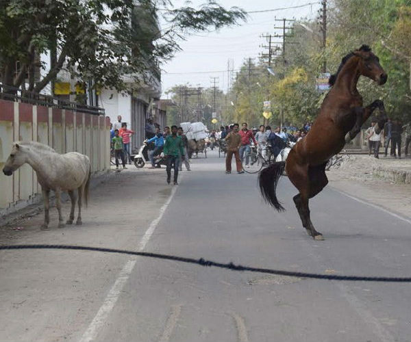 घोड़े ने सड़क पर जमकर मचाया उत्पात
