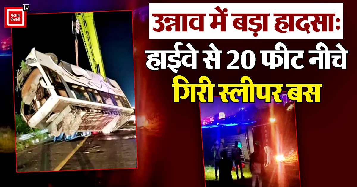 Unnao News: उत्तर प्रदेश के उन्नाव जिले में बुधवार देर रात एक बड़ा सड़क हादसा हुआ। आगरा-लखनऊ एक्सप्रेसवे पर चल रही एक डबल डेकर स्लीपर बस अचानक अनियंत्रित होकर हाईवे से करीब 20 फीट नीचे खाई में गिर गई। इस हादसे में 20 से अधिक यात्री गंभीर रूप से घायल हुए, जबकि कई लोगों को मामूली चोटें आई हैं।