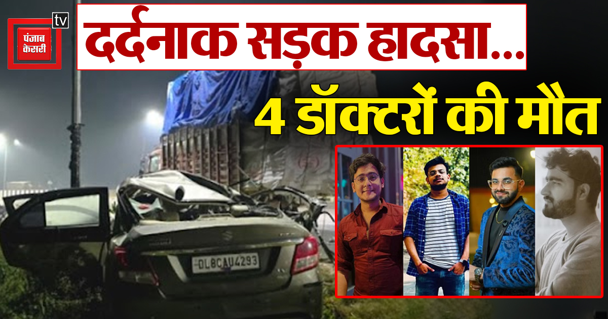 बड़ा सड़क हादसा; 4 डॉक्टरों की दर्दनाक मौत, खड़े DCM में जा घुसी कार...उड़ गए परखच्चे