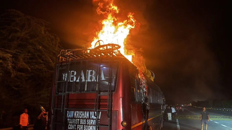 यमुना एक्सप्रेस-वे पर बस में लगी भीषण आग, यात्रियों की सतर्कता और पुलिस-फायर टीम की तुरंत कार्रवाई से बड़ा हादसा टला!