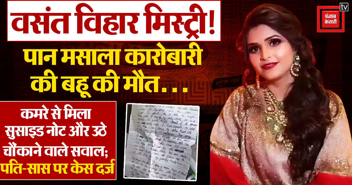 वसंत विहार मिस्ट्री! पान मसाला कारोबारी की बहू की मौत… कमरे से मिला सुसाइड नोट और उठे चौंकाने वाले सवाल; पति-सास पर केस दर्ज