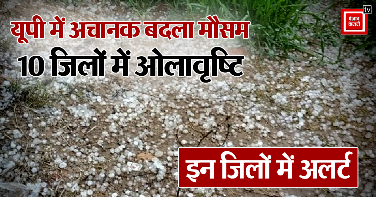 UP Weather update: उत्तर प्रदेश में एक बार फिर मौसम ने अचानक करवट ले ली है। मंगलवार तड़के कानपुर, औरैया, जालौन समेत करीब 10 जिलों में तेज हवाओं के साथ झमाझम बारिश हुई। उन्नाव, चित्रकूट और इटावा में करीब आधे घंटे तक ओलावृष्टि हुई, जिससे सड़कों पर बर्फ की सफेद चादर बिछ गई। बेमौसम बारिश और ओले गिरने से खेतों में खड़ी फसलें गिर गईं और किसानों को भारी नुकसान की आशंका जताई जा रही है।
