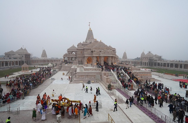 बता दें कि इस समारोह में अयोध्या से लगभग 1200 संतों को आमंत्रित किया गया है। प्रातः काल से ही मंदिर परिसर वेद मंत्रों की गूंज और शंखनाद से आध्यात्मिक ऊर्जा से भर उठा। यज्ञशाला में वैदिक आचार्यों के सान्निध्य में विविध कर्मकांड संपन्न हो रहे हैं। चारों तरफ जय श्रीराम के जयकारे गूंज रहे थे। उल्लेखनीय है कि प्रधानमंत्री नरेन्द्र मोदी के नेतृत्व में 22 जनवरी, 2024 को अयोध्या में नए राम लला की प्रतिमा की प्राण प्रतिष्ठा की गई थी ।