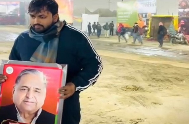 मुलायम सिंह यादव की तस्वीर के साथ सपा कार्यकर्ता ने संगम में लगाई डुबकी; नेताजी अमर रहे का लगाया नारा
