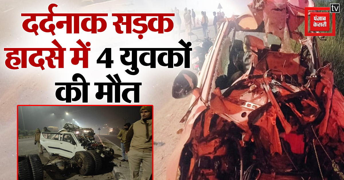 तेज रफ्तार ने ली 4 दोस्तों की जान, सड़क किनारे खड़े कैंटर में घुसी कार, डिब्बे की तरह पिचक गई; मौके पर ही तोड़ा दम