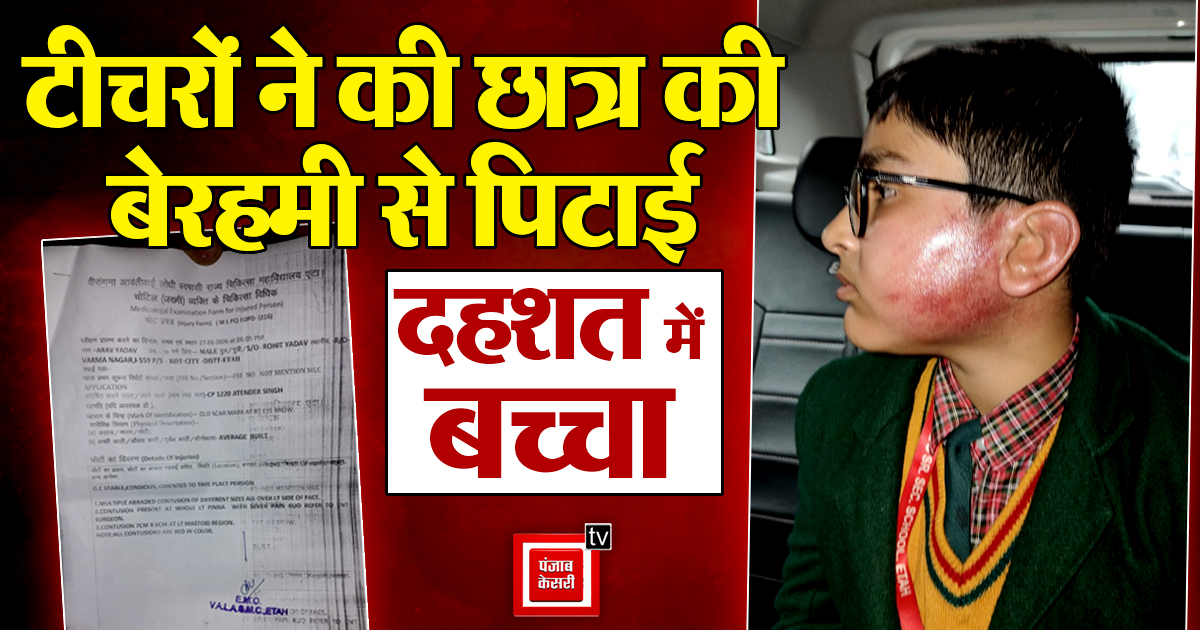 जानकारी के मुताबिक, शहर के वर्मा नगर मोहल्ले में रहने वाले रोहित यादव ने पुलिस को दी शिकायत में बताया कि उनका बेटा आरव यादव एक निजी स्कूल (सेंट पॉल्स स्कूल) में कक्षा छह का छात्र है। आरोप है कि मंगलवार को स्कूल परिसर में शिक्षक प्रवीन कुमार और हर्षित चौहान ने आरव की बेरहमी से पिटाई की, जिससे उसके चेहरे पर गंभीर चोटें आ गईं। डर के कारण बच्चा घर पर किसी को कुछ नहीं बता पाया।