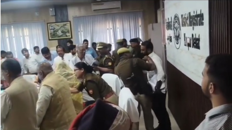 दरअसल, बैठक के दौरान भाजपा के दो गुटों में जोरदार बहस हो गई। बहस सांसद देवेंद्र सिंह भोले और राज्यमंत्री प्रतिभा शुक्ला के पति एवं पूर्व सांसद अनिल शुक्ल वारसी के बीच हुई। बहस इस कदर बढ़ गई कि दोनों नेताओं के बीच हाथापाई की नौबत आ गई। मौके पर मौजूद डीएम कपिल सिंह और एसपी श्रद्धा नरेंद्र पाण्डेय ने हस्तक्षेप कर स्थिति को कंट्रोल किया। इसके बाद बैठक को बीच में ही स्थगित कर दिया गया।