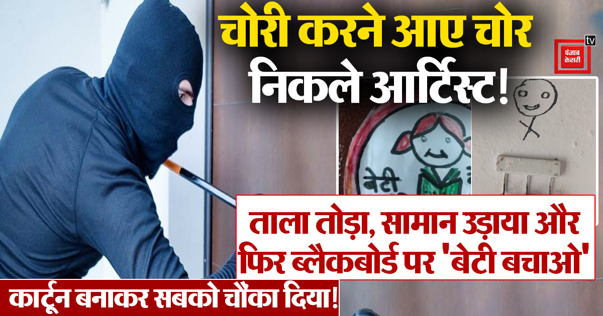 चोरी करने आए चोर निकले आर्टिस्ट! ताला तोड़ा, सामान उड़ाया और फिर ब्लैकबोर्ड पर ''बेटी बचाओ'' कार्टून बनाकर सबको चौंका दिया!