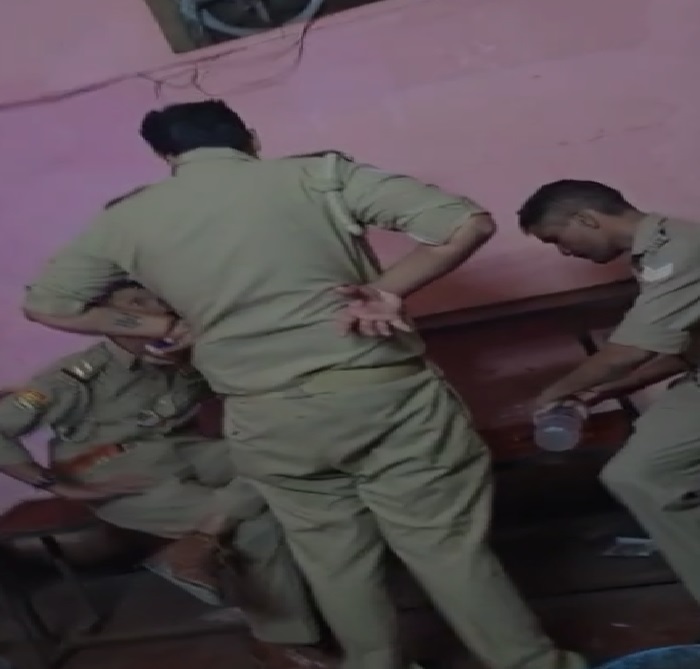 दिन में ही वर्दी में शराब पी रहे है पुलिस कर्मी