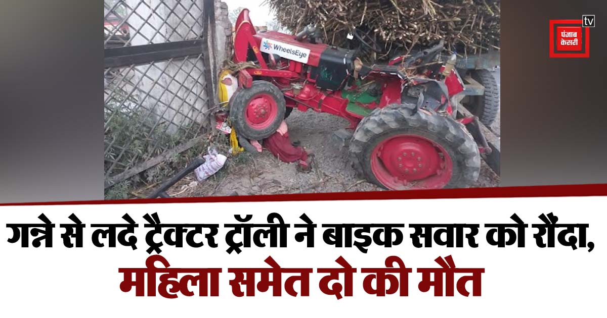 गन्ने से लदे ट्रैक्टर ट्रॉली ने बाइक सवार को रौंदा, महिला समेत दो की दर्दनाक मौत