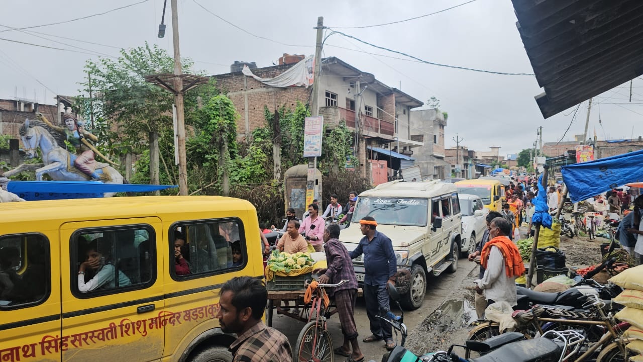 कुशीनगर ( अनुराग तिवारी ): नगर पंचायत खड्डा के रानी लक्ष्मी प्रतिमा के समीप सोहरौना रेलवे क्रॉसिंग–जलकल रोड पर प्रतिदिन सुबह भारी जाम की समस्या देखने को मिल रही है। अवैध रूप से लगाई जा रही सब्जी मंडी लोगों के लिए बड़ी मुसीबत बन गई है।
