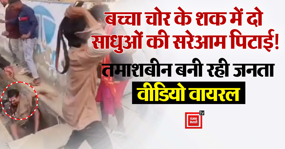 बच्चा चोर के शक में दो साधुओं की सरेआम पिटाई! बेल्ट और लात-घूंसों से पीटा, वीडियो बनाती रही जनता