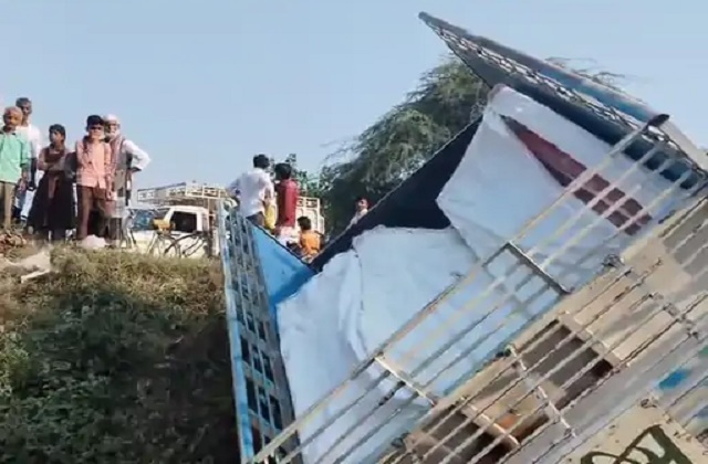 पिकअप खड्डे में पलटी, चालक मौके से फरार