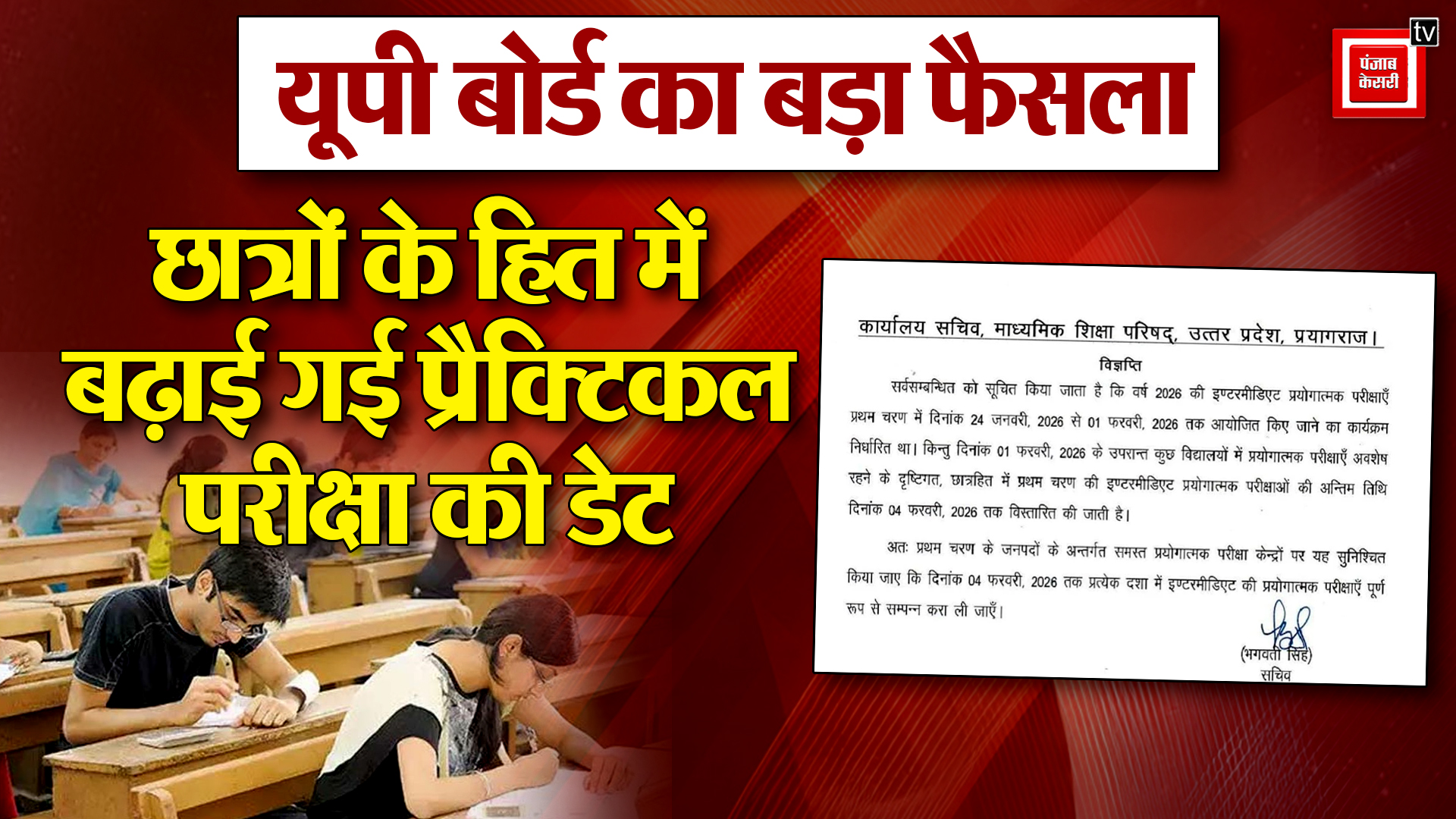 प्रयागराज: उत्तर प्रदेश माध्यमिक शिक्षा परिषद (UPMSP) ने इंटरमीडिएट प्रायोगिक परीक्षाओं को लेकर बड़ा फैसला लिया है। बोर्ड ने छात्रों के हित को ध्यान में रखते हुए प्रायोगिक परीक्षाओं की अंतिम तिथि बढ़ा दी है। अब यह परीक्षाएं 1 फरवरी की बजाय 4 फरवरी 2026 तक आयोजित की जाएंगी।