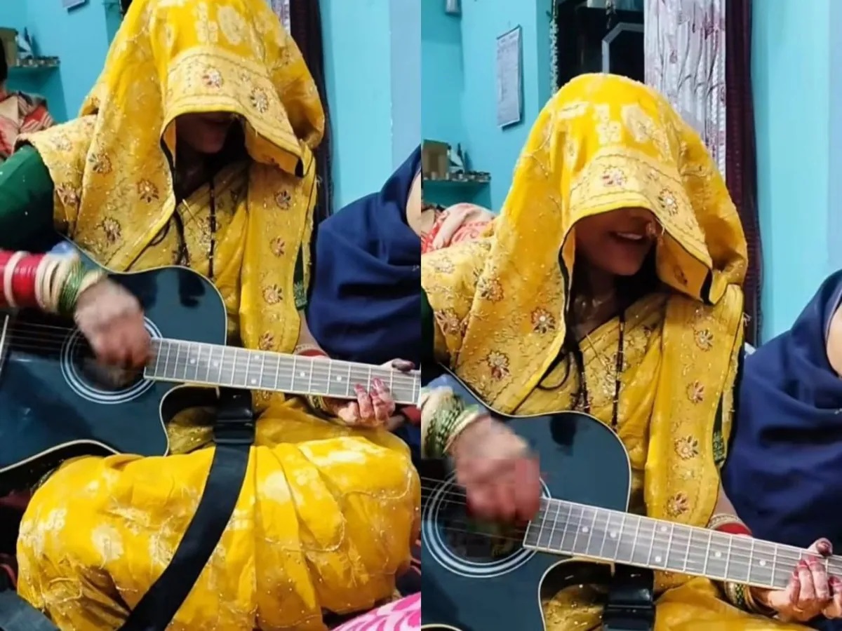 Viral Story: शोसल मीडिया के इस जमाने में रातों रात कब कौन वायरल हो जाए और मीडिया और शोसल मडिया पर सुर्खियां बटोरने लगा इसका किसी को अंदाजा नहीं है, ऐसा ही एक दुल्हन का वीडियो खूब वायरल हो रहा है, जिसमें वह घूंघट ओढ़े गिटार बजाते हुए रोमांटिक गीत गा रही है। “तेरा मेरा प्यार अमर…” गीत गाती इस दुल्हन ने लोगों का दिल जीत लिया, लेकिन इसके साथ ही हर किसी के मन में एक सवाल भी उठ रहा है। आख़िर यह दुल्हन है कौन? जिससे लोग गूगल पर खूब सर्च कर रहे हैं।
