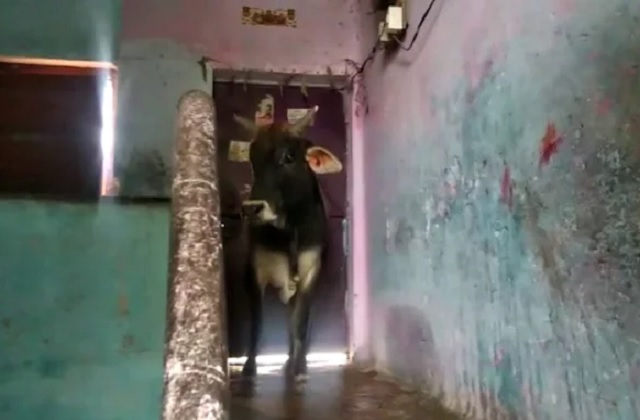 जब मकान की तीसरी मंजिल पर चढ़ गए नंदी महाराज, निकालने में लोगों का छूटा पसीना