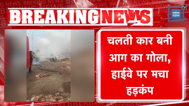 नेशनल हाईवे पर चलती कार बनी आग का गोला , कार चालक ने कूदकर बचाई जान